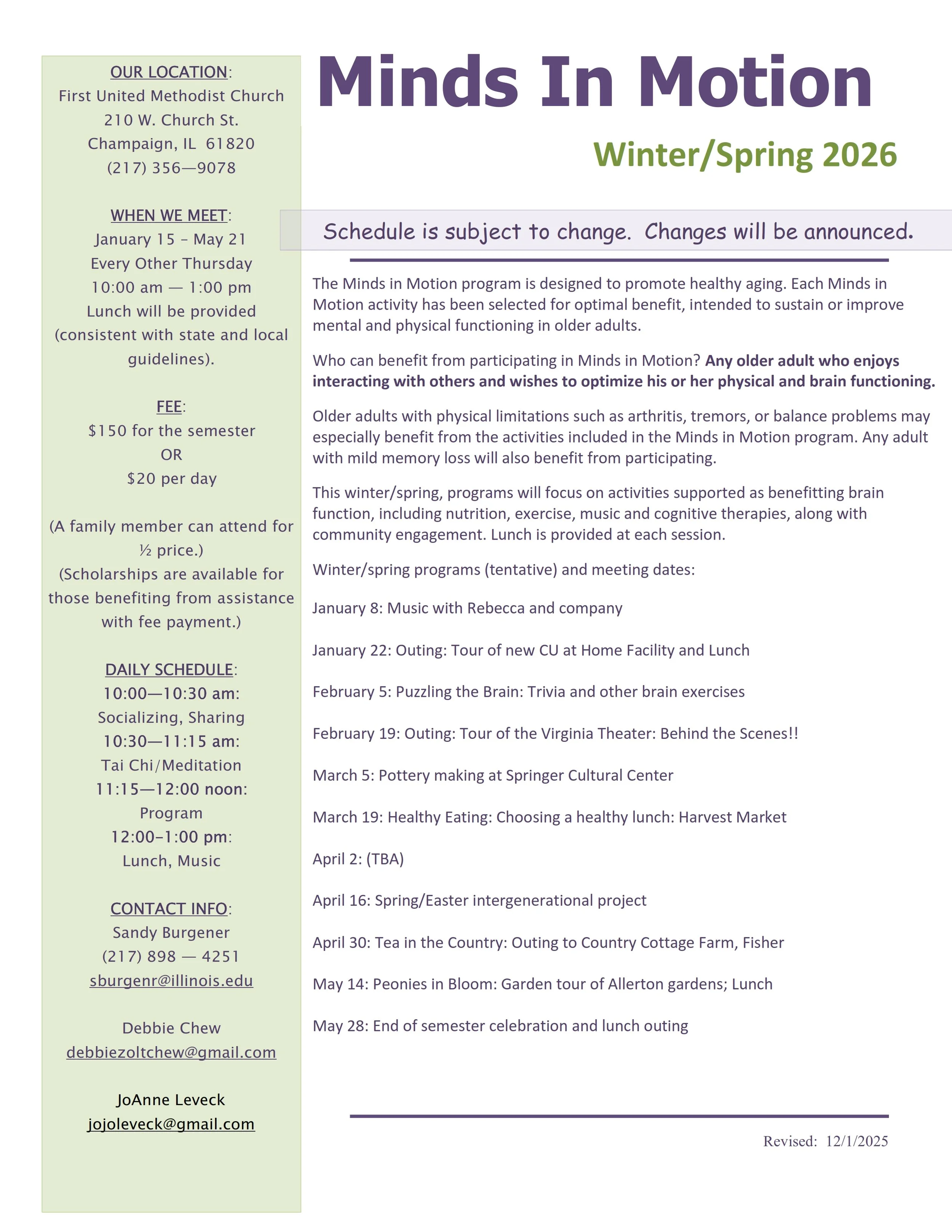 December 19, 2025 Bonnie Berner Minds in Motion - Winter/Spring 2026 December 19, 2025 Bonnie Berner Bonnie Berner